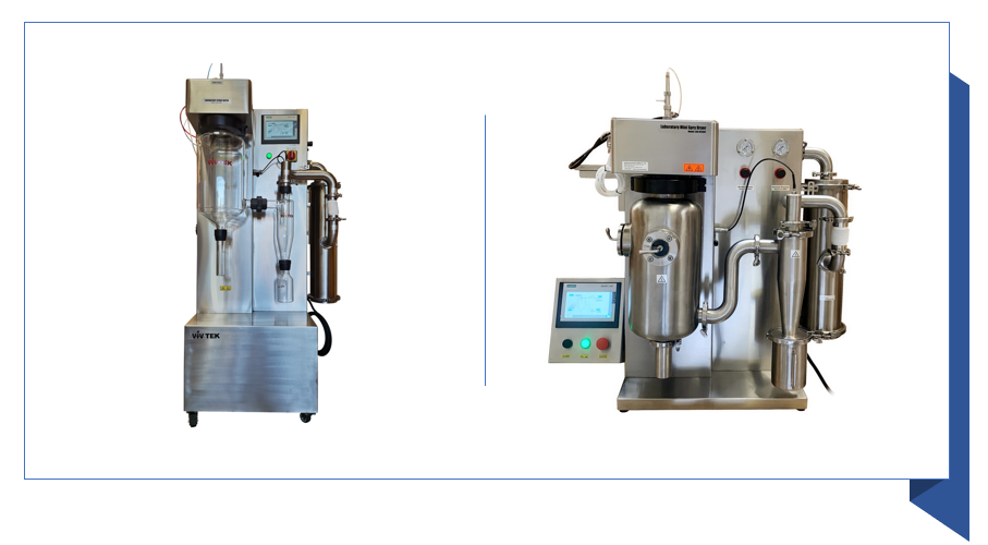 Spray system: 2 fluid co-current nozzles with standard 1.0mm jet